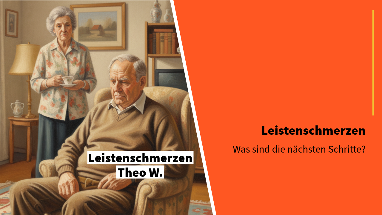Die Ehefrau von Herrn Theo W. ruft beim ärztlichen Bereitschaftsdienst an. Ihr Mann wirkt verändert, bewegt sich weniger und reagiert gereizt, wenn sie ihn anspricht. Er klagt seit dem Vormittag über Schmerzen in der linken Leiste. Tagsüber hatte sie gehofft, die Beschwerden würden nachlassen, doch am Abend verstärken sie sich. Ihr Mann macht sehr unklare Angaben und er sei dement. Sie ist beunruhigt, aber unsicher, ob sie etwas übersieht, was man ihr vorwerfen kann.